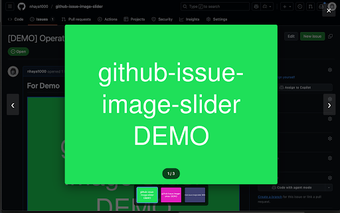 GitHub Issue Image Slider är en modern och lättanvänd webbläsartillägg som förbättrar upplevelsen av att hantera bilder i GitHub-ärenden. Istället för att öppna bilder i nya flikar, presenterar denna tillägg bilder i en interaktiv slider som gör det enklare att navigera genom flera bilder. Användare kan klicka på valfri bild för att se den i ett vackert helskärmsläge, vilket ger en mer tilltalande visuell upplevelse.